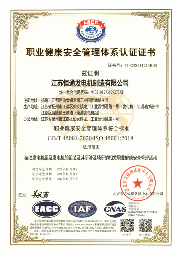Honorary Qualification of Hengtong Generator